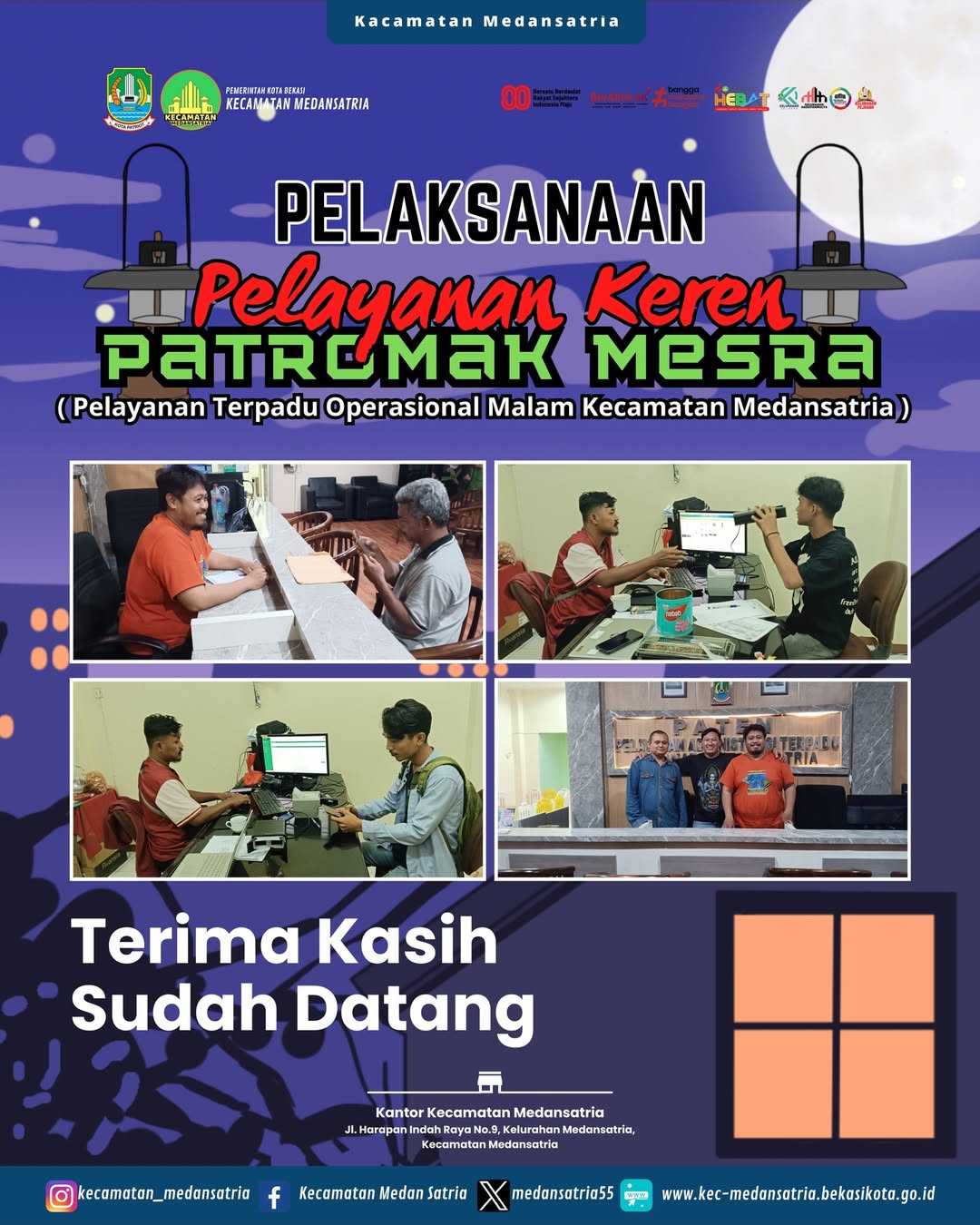 MEDANSATRIA - Malam ini, Kantor Kecamatan Medansatria kembali menyelenggarakan Pelayanan K...